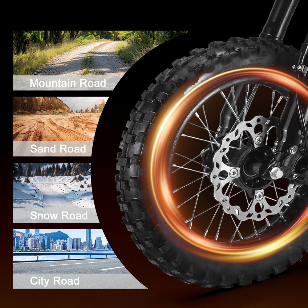 Blaze delivers strong electric performance with responsive acceleration and impressive top-end speed designed for off-road riding and recreational trail use. Actual speed may vary depending on rider weight, terrain, and riding conditions.